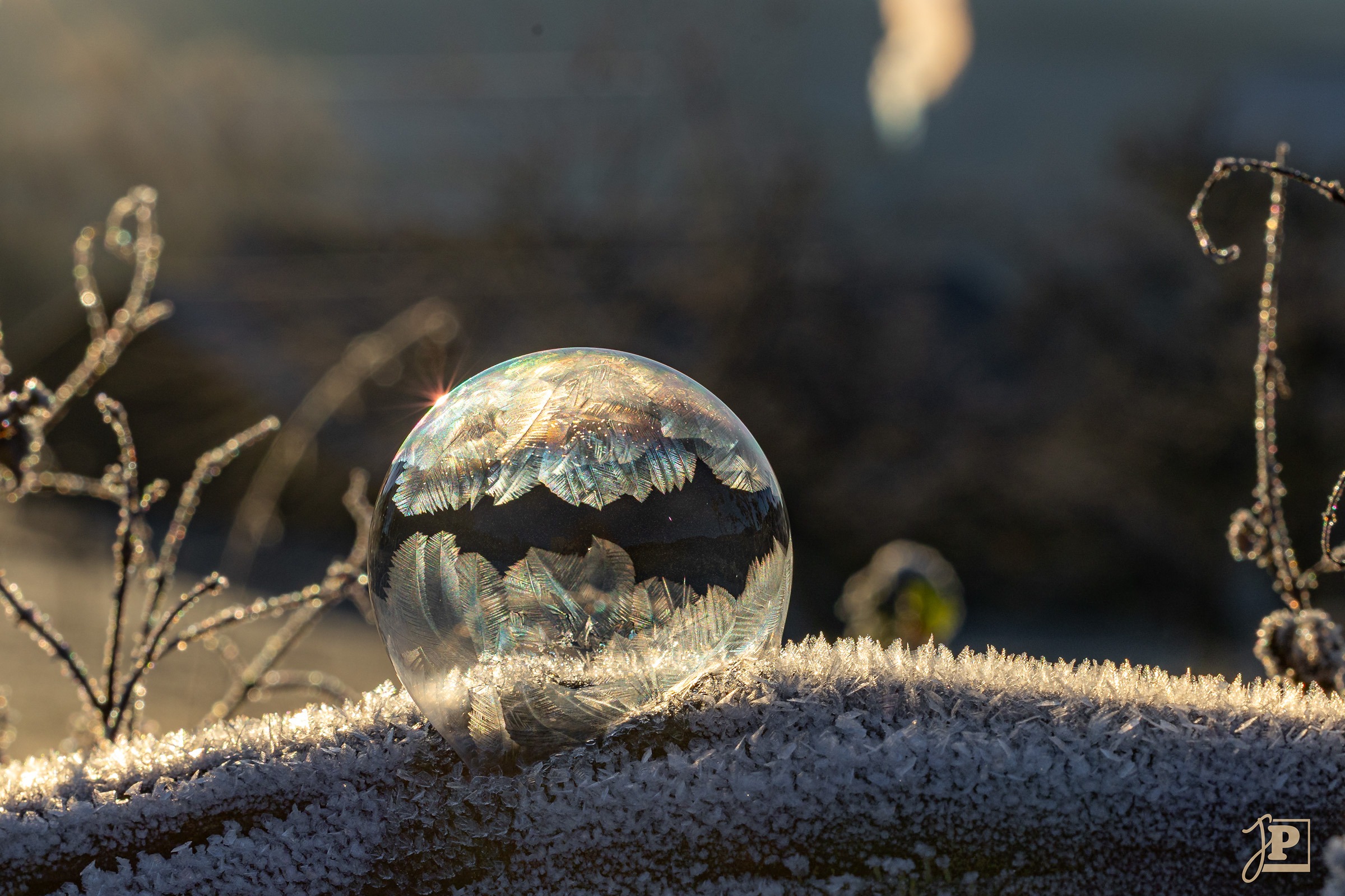 Anyone who knows me knows that, try as I might, I simply can’t resist the temptation to photograph freezing soap bubbles on cold winter mornings—as you can read here and here. The resulting works of art are simply different every time. In fact, the process itself—watching the ice crystals slowly grow through the soap bubble—is even more fascinating than the result in the form of a single photo.